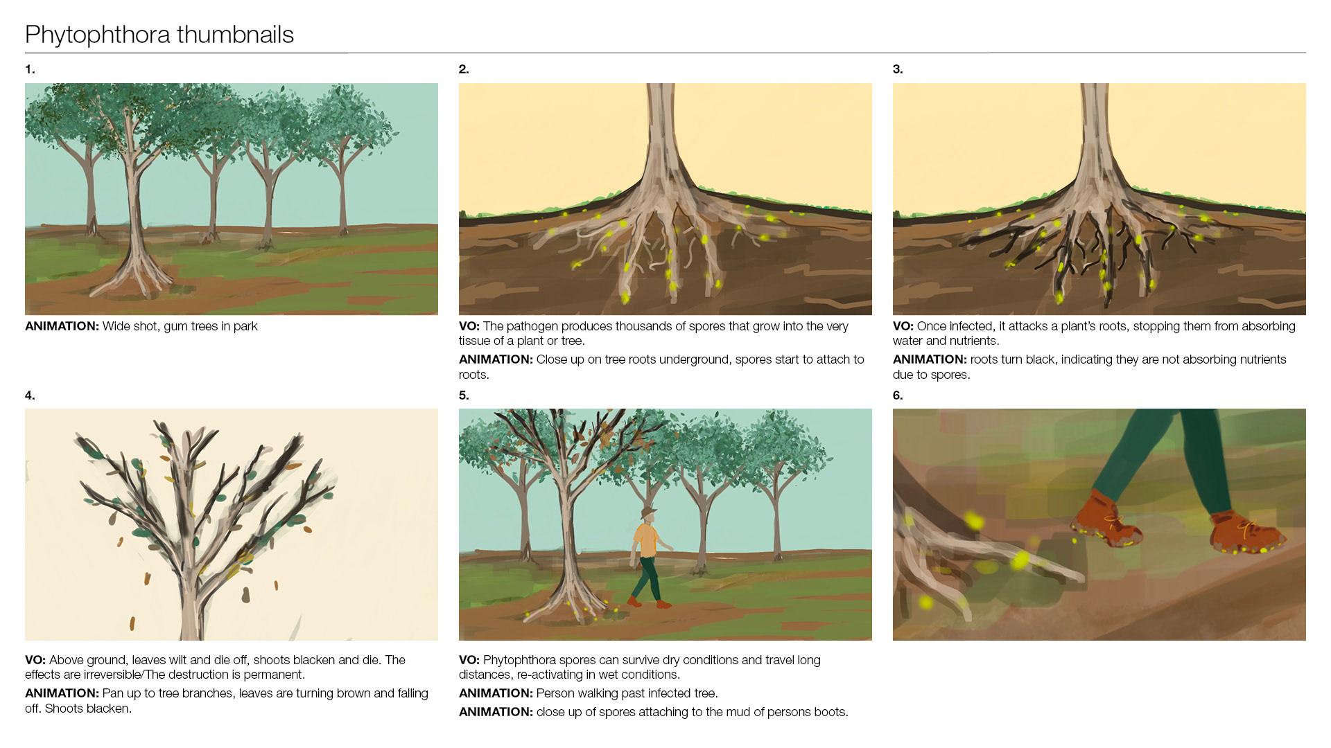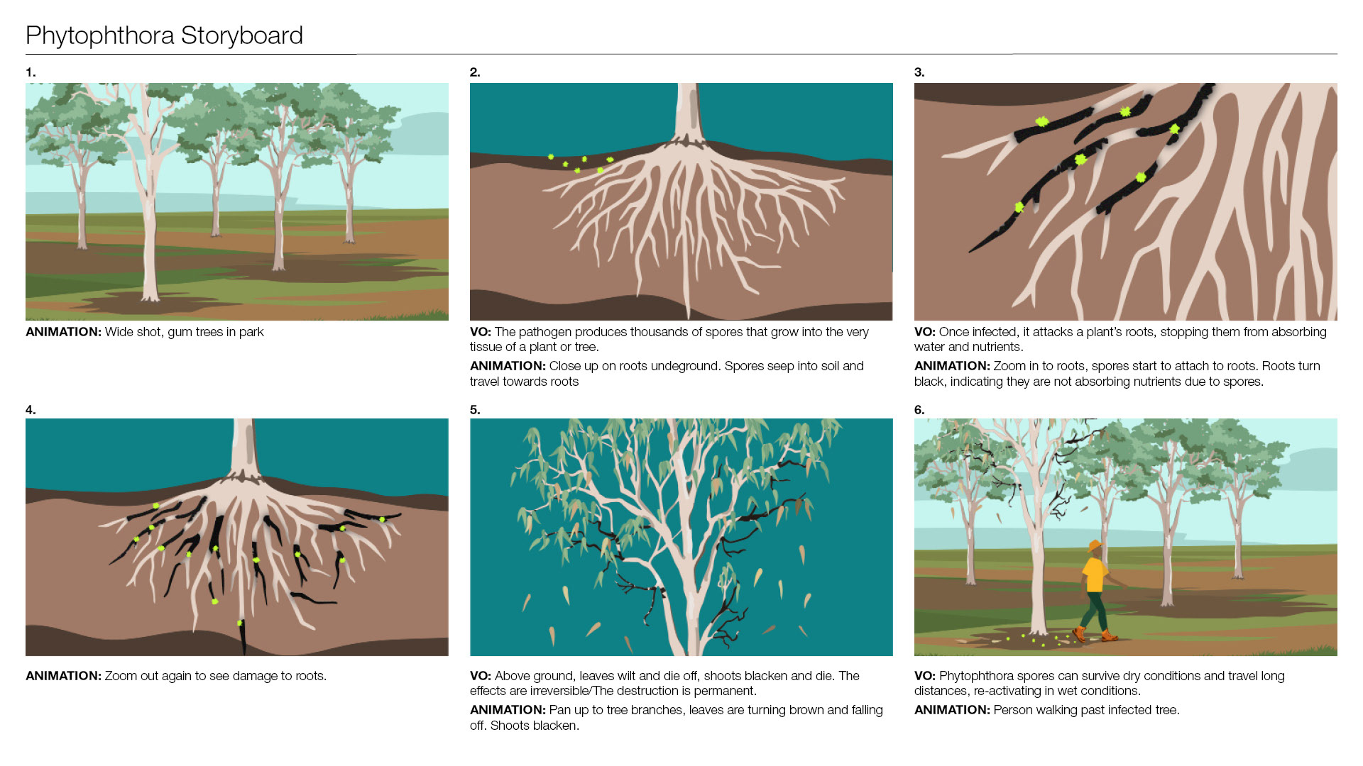 Video production and animation explaining invasive root rot called Phytophthora for NSW National Parks and Wildlife Service. The challenge for this video was to interpret a complex scientific process into an easily digestible animation.